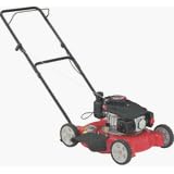 Powred by an MTD OHV 123 cc engine with recoil start. 20" deck with side discharge. 7" front and rear wheels with 3 position manual height adjusters. Some assembly required. 1 year limited warranty.