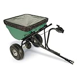 The spreader is constructed with a 7/8-inch powder-coated steel tube frame, a heavy-duty plastic hopper with a wrap-around support for additional strength, and metal gears with grease fittings for durability and reduced maintenance. Two 10-inch pneumatic tires with steel wheels provide ease of movement over many different terrains and in even difficult conditions. A handy rain cover is provided for spreading in inclement weather conditions. All parts are covered with a 90-day limited warranty, and assembly requires about thirty minutes.--Jeffrey Dalto