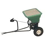 The spreader is constructed with a 7/8-inch powder-coated steel tube frame, a heavy-duty plastic hopper, and self-lubricating nylon gears for durability and reduced maintenance. Two 10-inch pneumatic tires with steel wheels provide ease of movement over many different terrains and in even difficult conditions. A handy rain cover is provided for spreading in inclement weather conditions. All parts are covered with a 90-day limited warranty, and assembly takes about thirty minutes.--Jeffrey Dalto